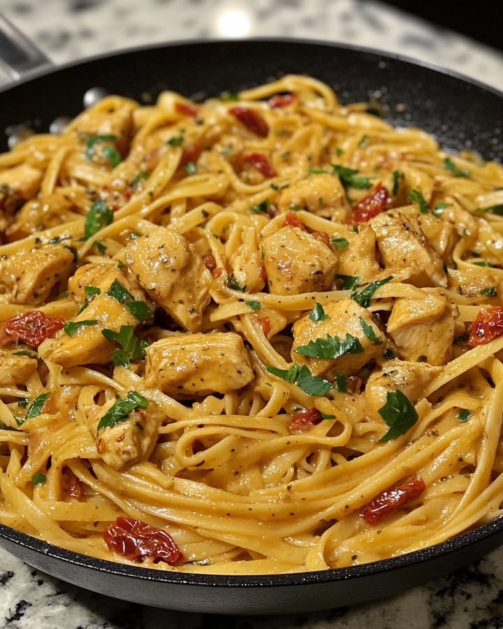 Sí, puedes marinar el pollo con hasta 24 horas de antelación (más tierno). También puedes picar el ajo, rallar el queso y picar los tomates secos unas horas antes y guardarlos por separado en la nevera. Incluso puedes mezclar los ingredientes secos para el empanizado. Lo único que debes hacer en el momento es cocinar la pasta, hacer la salsa y freír el pollo para que todo esté en su punto óptimo de textura.