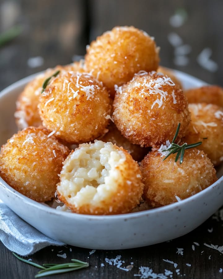 Descubre cómo hacer Arancini Crujientes Quesosos en casa fácil y rápido. Receta perfecta para aperitivos y reuniones. Sigue estos sencillos pasos.