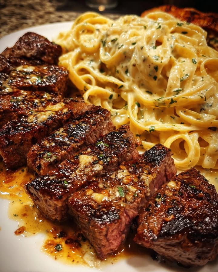 Descubre la receta de Bocados Steak Alfredo irresistible con carne jugosa y pasta en salsa cremosa perfecta para cenas especiales en familia
