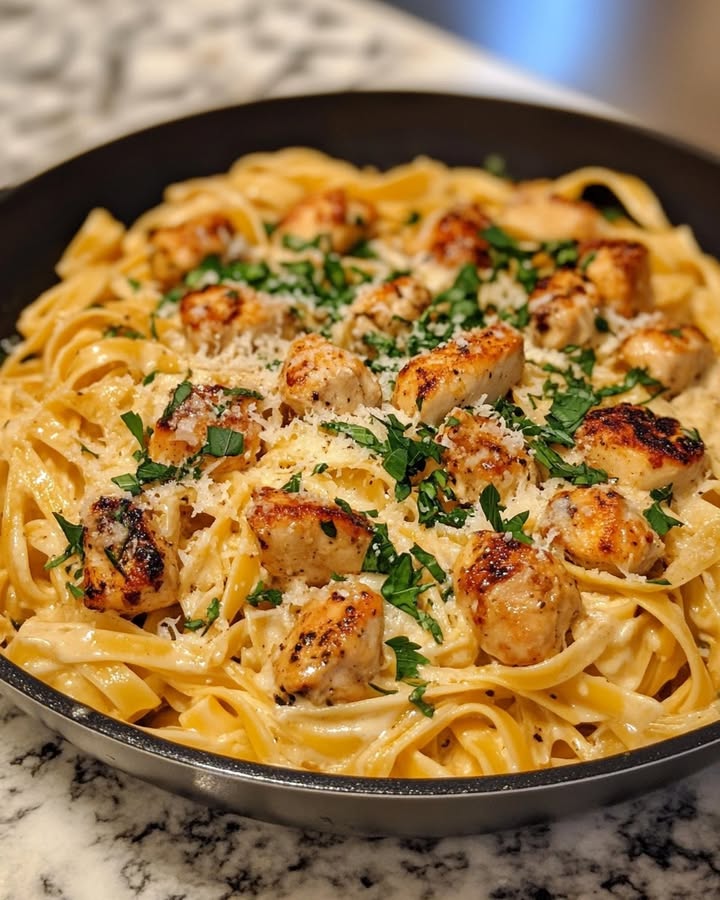 Descubre la receta de Pasta Cremosa Parmesana con pollo al ajo crujiente perfecta para cenas elegantes y casuales lista en 30 minutos