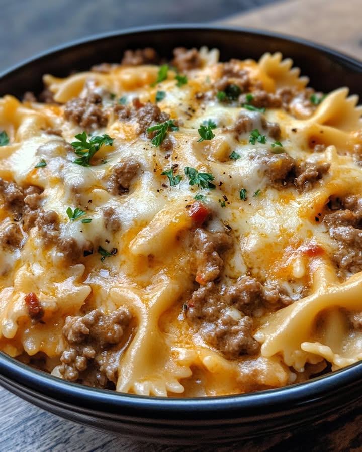 Descubre la receta de Pasta Farfalle Cremosa con salsa de carne y queso cheddar. Perfecta para cenas rápidas y deliciosas. Sabor inigualable en 30 minutos.