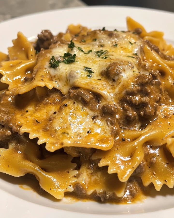 Descubre la receta de Pasta Lazo Cremosa con salsa de carne y queso perfecta para cenas rápidas y reconfortantes llenas de sabor y fácil de preparar