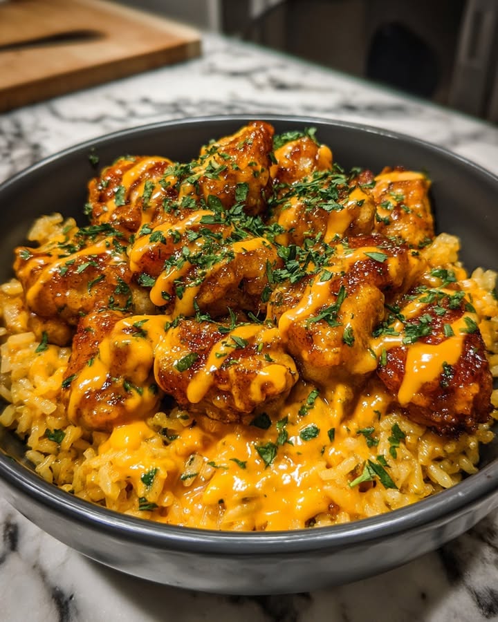 Puedes sustituir el queso cheddar por queso parmesano y el Velveeta por queso crema o mozzarella. También puedes usar arroz integral para una versión más saludable. Asegúrate de que el pollo no se sobrecocine para que quede jugoso y tierno. Agregar perejil fresco al final mejorará la presentación y aportará un toque de frescura. Rebajar la cantidad de queso o añadir más verduras puede hacer la receta más saludable.