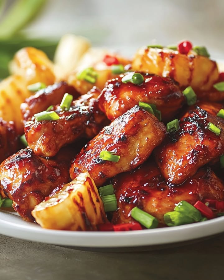 Descubre la receta de Pollo Huli Huli con sabores dulces y salados que te transportarán a Hawaii en cada bocado Receta fácil y deliciosa.