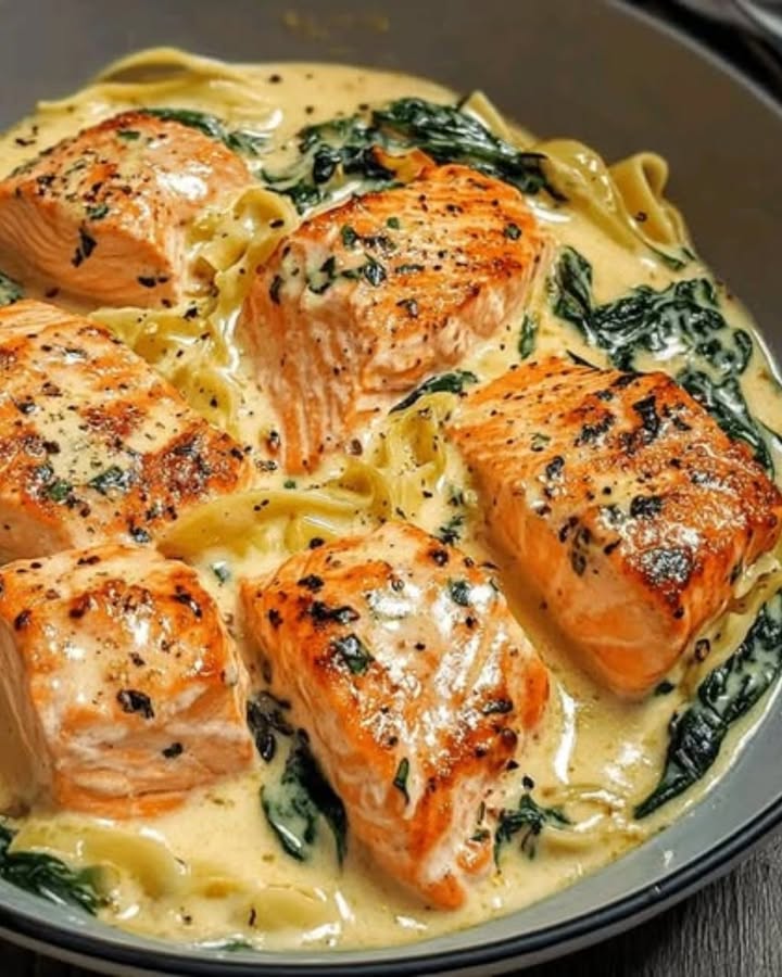 Descubre la receta de Salmón Florentino Cremoso perfecta para cenas elegantes y rápidas en casa. Sorprende a tu familia con este plato delicioso.