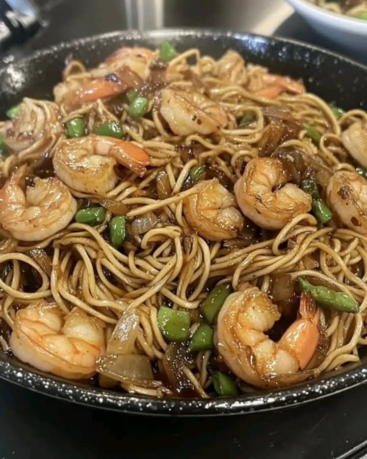 Salteado de Fideos Crevetas rápido y sabroso con verduras crujientes y salsas asiáticas perfecto para cenas express y lleno de sabor.