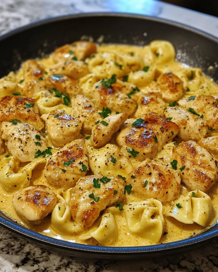 Descubre la receta de Tortellini Cremoso Ajo y Pollo en una sartén fácil y rápida para cenas familiares irresistibles y llenas de sabor.